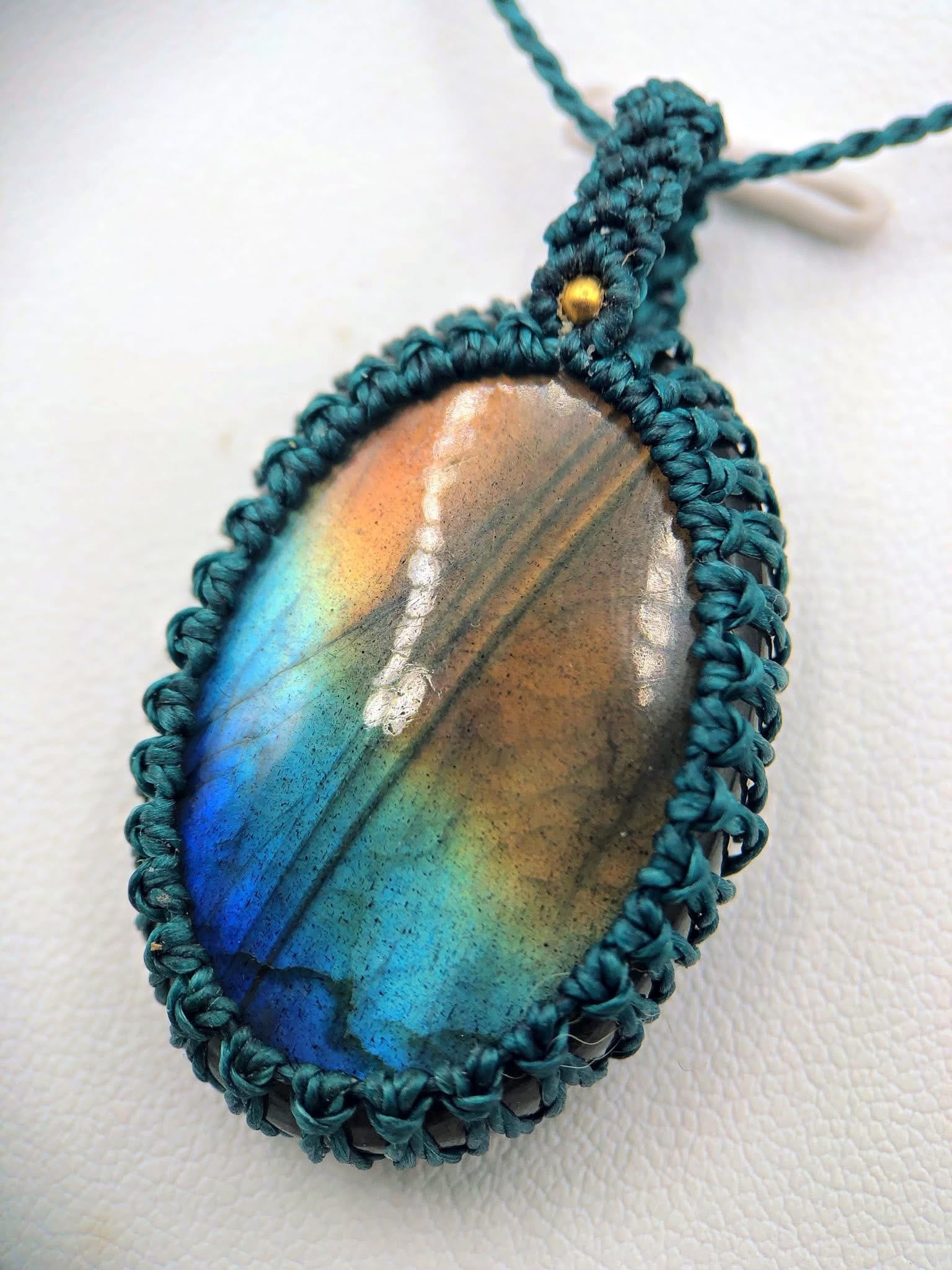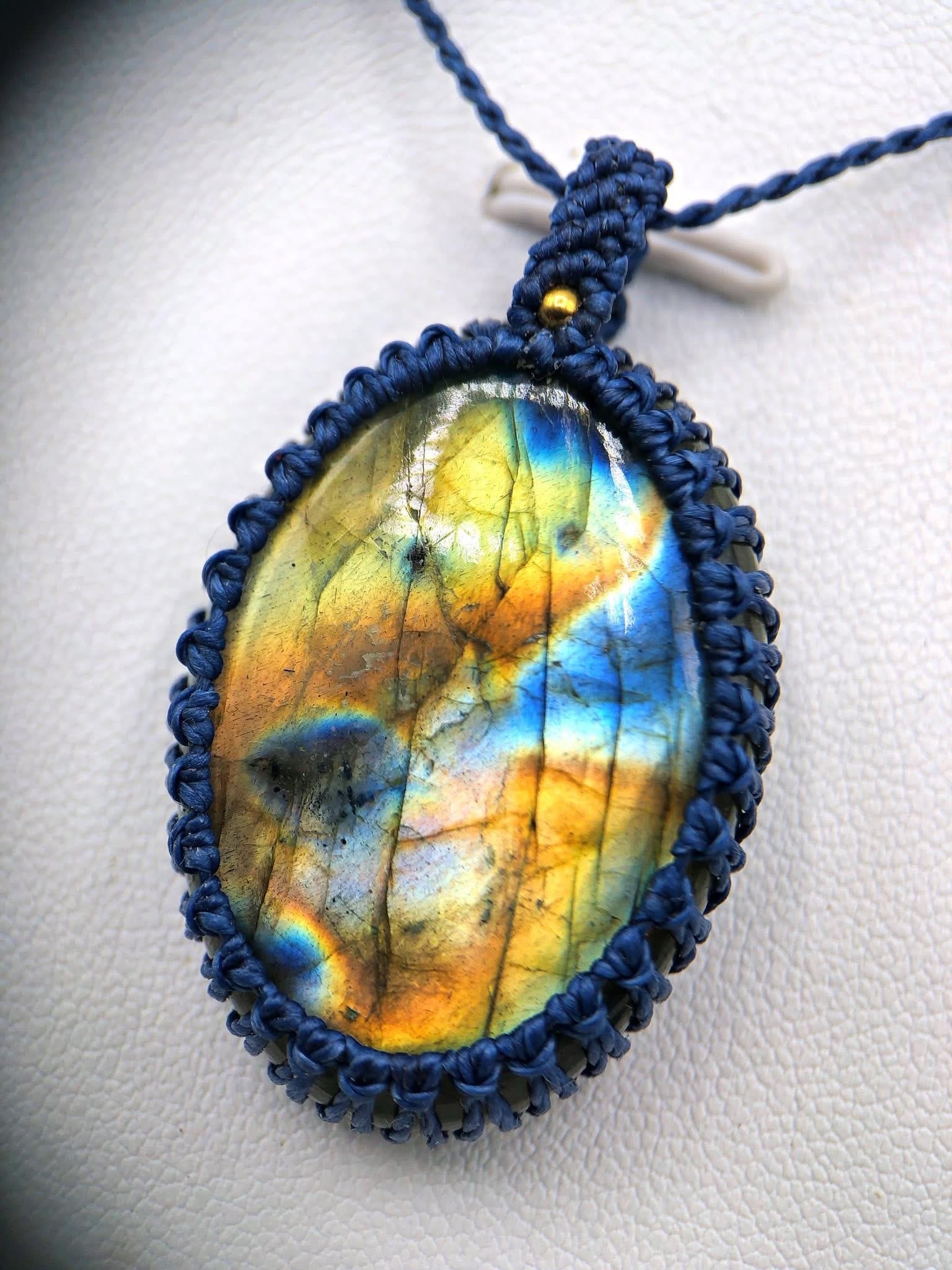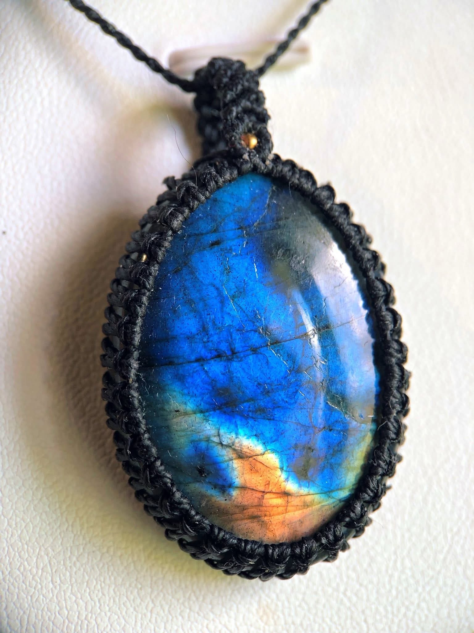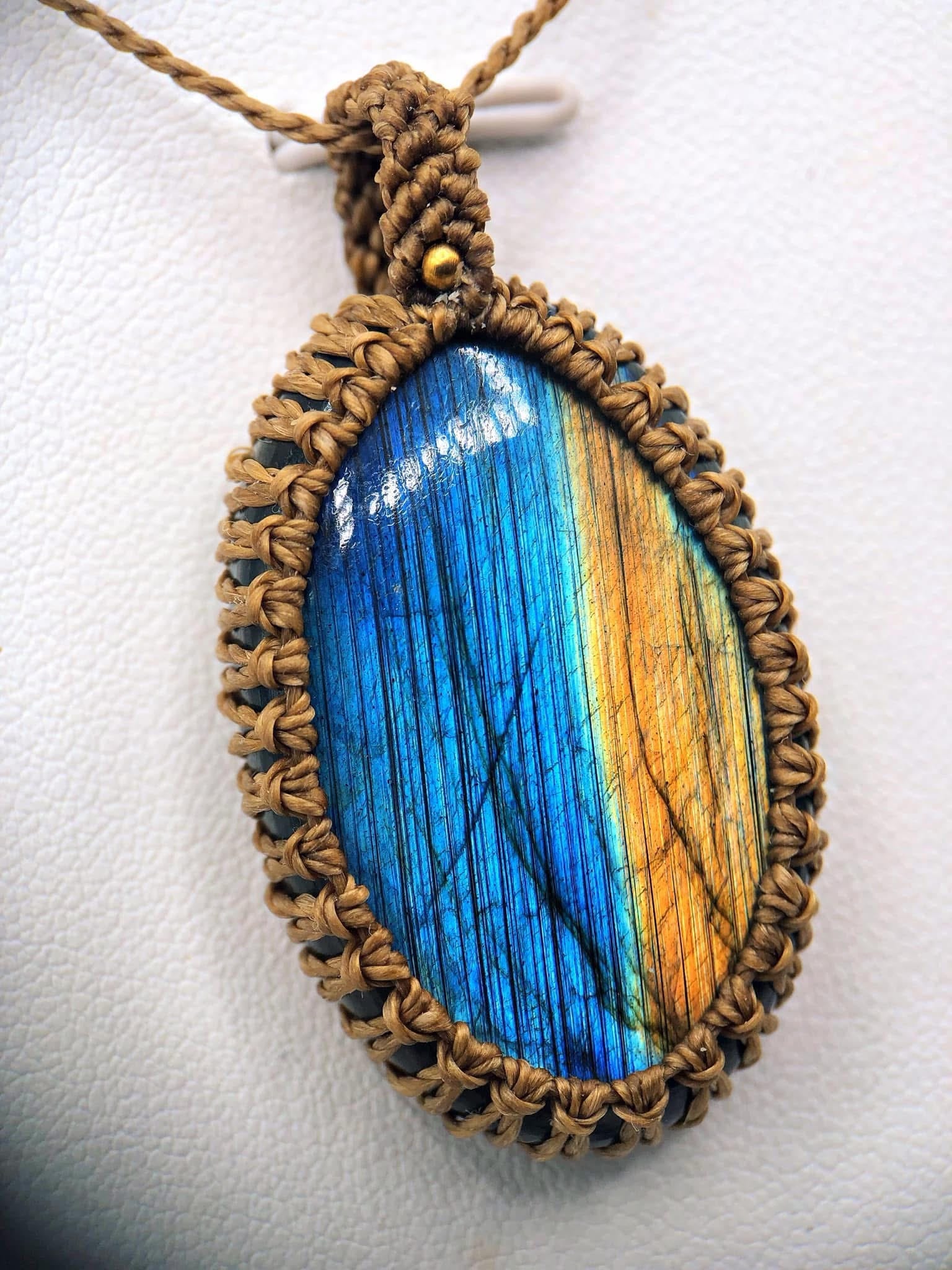 • Le pendentif est une Labradorite sertie en micro macramé fin.